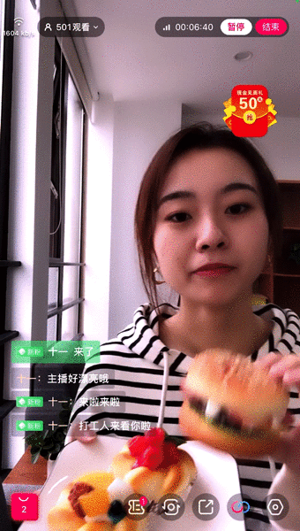 某甜品店想要为门店引流,于是选择通过用直播进行品牌宣传,进入小程序观看直播的用户均可参与“邀请好友领福利”活动,用户邀请未进入过该直播场次的好友观看直播,即可领取8折优惠券。商家将福利活动按钮设置为“始终悬浮在直播页面”,潜移默化引导用户分享,观众分享后,直播间流量暴涨,同时带动了线上零售产品的销量。