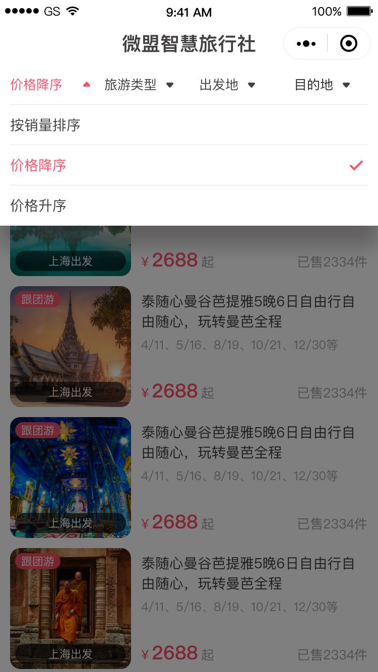 场景:线上消费者通过旅行社或景点的小程序商城查看旅游产品,选购心仪线路,可在线上直接进行预订。